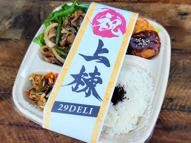 厳選牛ハラミと唐揚げが入ったお弁当です。