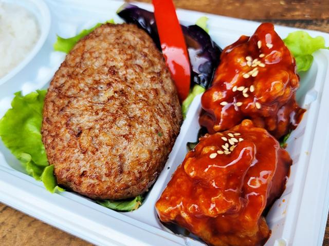 黒毛和牛ハンバーグと厳選ハラミ焼肉とからあげが入ったお弁当