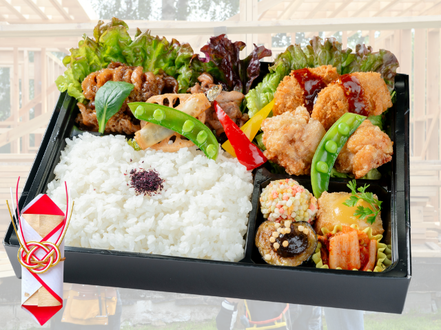内容:からあげ、ヒレカツ、エビフライ、牛カルビ焼肉、おにぎり
