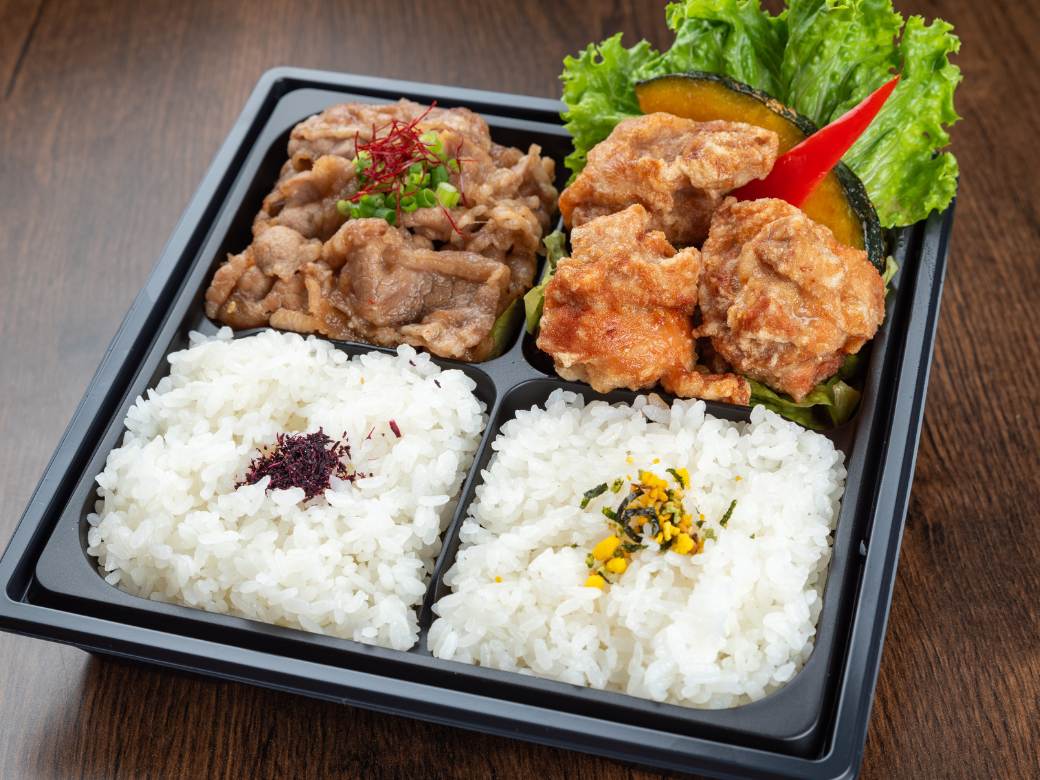 厳選牛ハラミと唐揚げが入ったお弁当です。
