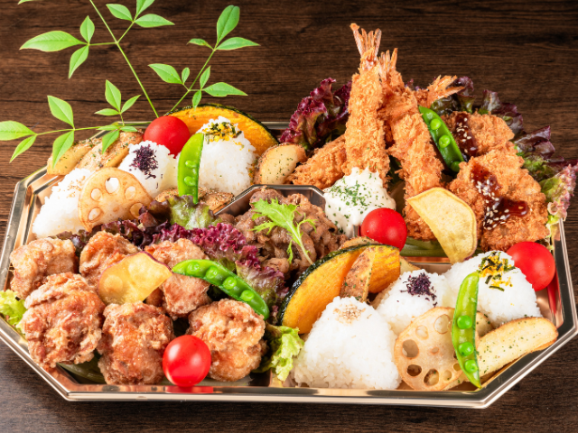 内容:からあげ、ヒレカツ、エビフライ、牛カルビ焼肉、おにぎり